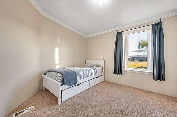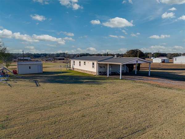 Move-in ready manufactured home with a large attached carport and shed on 1.5 acres in Chisum ISD at a great price. It's on a private concrete road and about 30 minutes from Paris, Bonham, and Bois d'Arc Lake. Within 10 minutes, you'll find several manufacturing plants that provide more than 2,000 blue- and white-collar jobs.
