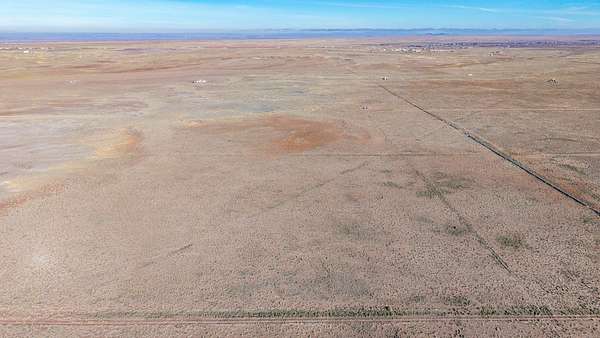 The level terrain features bare ground with scattered scrub brush, making site preparation straightforward. Distant mountain views to the northwest add scenic interest. Wildlife includes elk, mule deer, and coyotes.