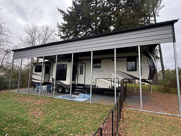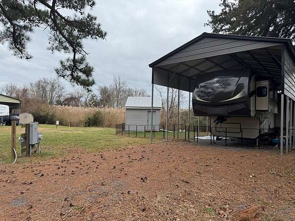 Est $267/moLot with camperport and shed on site. Includes access to pool, dock, fishing pier, crabbing pier, marina, clubhouse, boat ramp, boat slips, playground, pavilion, and more. Camper shown in photos does not convey.