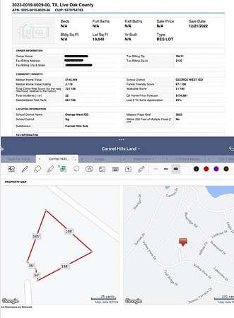 Est $716/moWOW!!!! HUGE price drop. Here's the perfect opportunity to build your dream home or "Barndominium" on FIVE lots, totaling approximately 2.32 acres. You have access from TWO cul-de-sacs, enhancing the versatility of building and land use! Carmel Hills subdivision is a tranquil country neighborhood with access to Corpus Christi Lake. Property has had some clearing done already and ready for you to build your dream home. (In order to drive to the property put in the address 119 Grandview Sandia TX- you will come to the end of the cul de sac and it will be on the right- you will be able to look downward and see the land better)