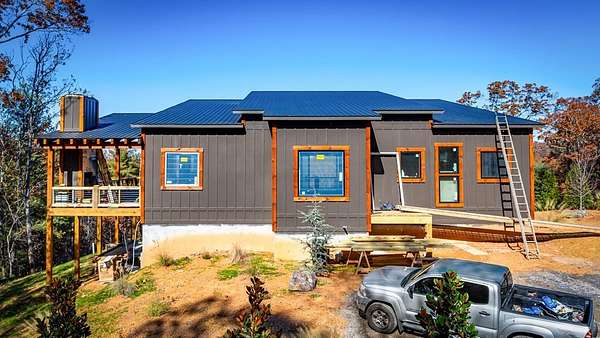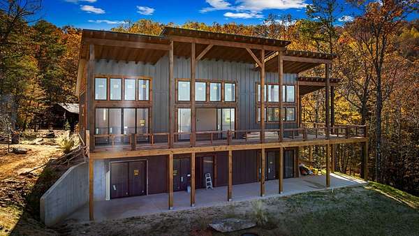Acreage of Awesome: 3 Acres of Mountain Modern Magic Awaits Imagine waking to birdsong and a soft breeze, your view sweeping across 3 acres of rolling hills where the Blue Ridge Mountains seem to bow in greeting. This new build almost complete 4-bedroom, 3.5-bath Mountain Modern haven is like a warm mountain embrace--fully furnished with high-end touches upon completion, ready for your sky-high adventures. The gentle lot offers endless options: a croquet lawn, pickleball court, mini-golf course, or private pool. Enter to hardwood floors blending with Wood and Drywall for a natural feel. The kitchen shines with quiet high-end appliances, cool granite counters, custom cabinetry for easy organization, and a pantry big enough for a wine collection. It connects to a spacious dining area for shared meals, leading to the great room's gas log fireplace and wall of windows flooding the space with long-range views. Head outside to the generous deck and exterior fireplace for storytelling under the pines, with the land inviting your ideas on those soft slopes. The terrace level adds that extra layer of comfort: A versatile den/media lounge complete with a wet bar for casual cocktails and binge-watching sessions, a second primary suite designed for quiet downtime, and two bright guest bedrooms sharing a luxurious bath with relaxing amenities and natural light. A quick 5-mile drive to Blue Ridge's eats, music, and river paths, this spot launches your Appalachian outings. Why limit to square feet when acres of wonder wait, almost yours? Your mountain base calls--jump in!