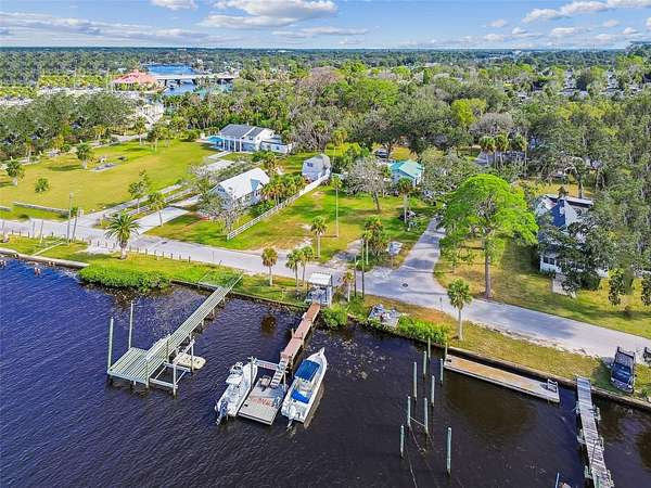Exceptional waterfront lot just minutes from the open Gulf! Located on the widest part of the Cotee River (Pithlachascotee River), this .34-acre corner lot at Sunset Blvd & Chasco St. offers spectacular water views. Zoned for single-family use and no HOA restrictions! Build your dream home and enjoy the privacy of a sanctuary island directly across the river. Dock, lift and floating dock construction was started but not completed. Rare opportunity in the heart of Port Richey! Just minutes away, downtown New Port Richey offers a vibrant mix of boutique shopping, dining, and nightlife including breweries, pubs, and live entertainment venues. The area is experiencing exciting growth with new restaurants, retail spaces, and the reopening of the historic Hacienda Hotel. Whether you're looking for a relaxing riverfront lifestyle or proximity to a thriving downtown scene, this property delivers both!