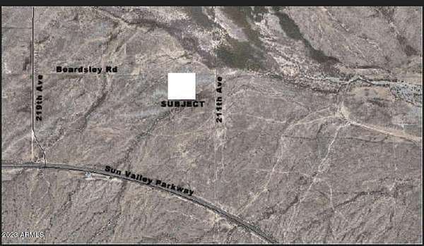 Approximately 22 miles from the TSMC plant & approximately 1 mile East of Mesquite Mountain Ranch Subdivision that is under construction; There are tentative plans for 211th Avenue to be an access road between White Tanks Freeway & Sun Valley Parkway. Located at approximately 211th Avenue & Beardsley and just less than a mile north Sun Valley Parkway; Planned Area Development (PAD) Surprise Special Planning Area 3 (SPA3) ; The current grazing lease puts the property in the legal class of AG (02-OR) Section/Town/Range 25/4N/3W Legal Description NW4 NE4 NE4