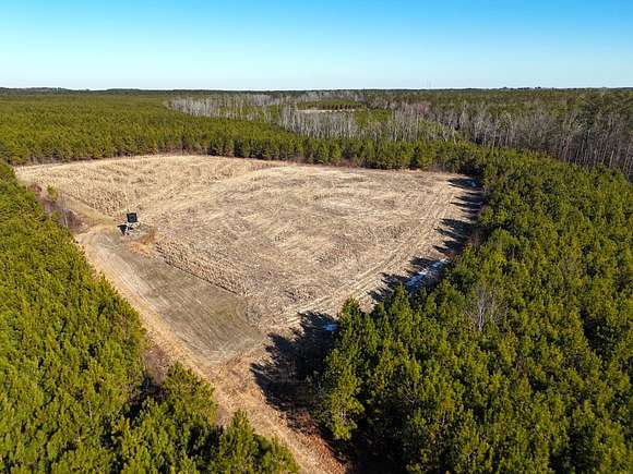 Here is your opportunity to own a premier big game hunting property in the heart of Sussex County, Virginia! This property was designed to attract and hold whitetail deer and turkey. One glance at the layout and you will see how. Over 20 acres of food plots spread across 5 different locations. Hunt any wind direction! A corn and soybean rotation has been established with bumper crops each year! Cow peas are planted on soybean years for early forage and late soybeans come after. Utilize the established fields to concoct your own formula for success! This area is known for great timber production and this property is no exception. The last timber harvest was a clear cut of all but the stream side management zones. This happened in 2014 and the cutover was replanted the following year. Now you have a solid stand of 10-year-old loblolly pines. Come watch your investment grow! A deeded access road gets you in from Rt. 40. 2.8 miles of all-weather road circumnavigates the property with an additional 1.2 miles of interior roads. The road along the eastern boundary is 1.1 miles long by itself! The southern boundary is 1,089 feet along the run of Hunting Quarter Swamp and there's an additional 4,500 feet of interior intermittent streams. There are several ladder stands across the property and there is a box blind on every food plot. All stands and blinds convey with the property! The off-grid camp site is currently located on the northwest corner of the northwest food plot. There you will find two 10'x12' bunk houses that also convey with the property!