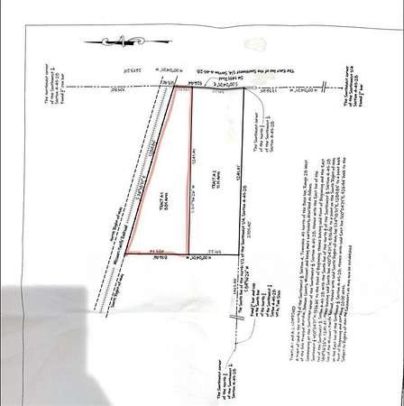 Tract A-1 A tract of land in the North f of the Southwest 4, Section 4, Township 45 North of the Base line, Range 28 west of the 5th Principal Meridian, Johnson County, Missouri and being more particularly described as follows: commencing at the Southeast corner of the Southwest 4, Section 4-45-28; thence with the East line of the Southwest # NO0 degrees 04'01"W, 1727.87' to the Point of Beginning; thence leaving said Point of Beginning and the East line of the Southwest 4, Section 4-45-28 589 degrees 56'26"W, 1241.41'; thence N00 degrees 04'01"w, 485.74' to a point on the South Right-of-Way line of the missouri-Pacific Railroad; thence with said South Right-of-way line S74o18'51"E, 1289.85' to a point back on the East line of the Southwest 4, Section 4-45-28; thence with said East line S00 degrees 04'01"E, 135.72' back to the Point of Beginning and containing 8.85 acres. Subject to Rights-of-way and Easements as may now be established.