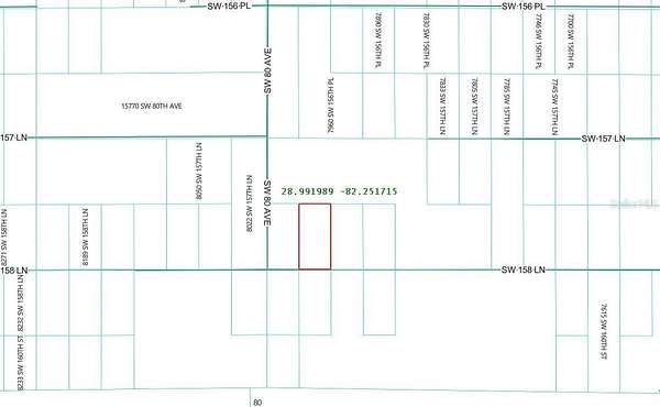 *** From Highway 200. Turn east on Highway 484. The road will elbow to the south. Continue on 484. Just before 484 elbows east, turn on Marion Oaks Pass. Turn right onto SW 139th Place. The road will bend left and become SW 79th Terrace. Turn right onto SW 145th Street. Turn left onto SW 85th Ave. Turn left onto SW 155th Street. Turn right onto SW 80th Ave. Turn left at the end. Located on the north side of SW 158th Lane, 2nd parcel east of SW 80th Avenue. The coordinates to reach the property are as follows: 28.991989, -82.251715 Degrees