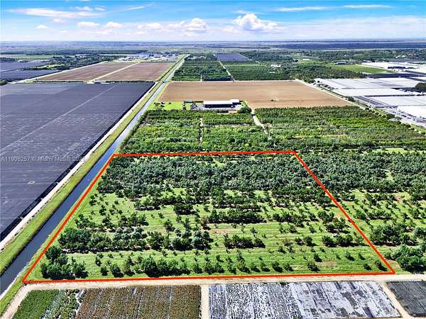 Discover this exceptional canal-front avocado grove on 8.81 acres in the heart of South Dade's agricultural zone. The property features a full sprinkler irrigation system, is completely fenced, and boasts direct canal access -- ideal for agri-use, investment, or a private estate retreat. Mature avocado trees are thriving, the grounds are professionally maintained, and the infrastructure supports both production and lifestyle potential. Rare opportunity combining canal-frontage and grove-income potential. This property can be sold together with folios 30-6833-000-0030 and 30-6833-000-0031--endless possibilities with 19 acres in total for sale.
