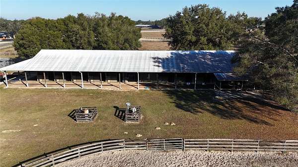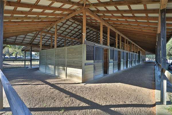 Welcome to this exceptional 10+/- acre equestrian property, perfectly designed for horse enthusiasts and trainers alike. Situated within the Ocala Horse Complex, this 20-stall shedrow barn is complete with a tack and feed room, as well as a full bath for added convenience. An inviting bonus room located upstairs provides an ideal space for a lounge or meeting area.