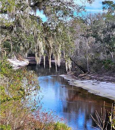 If "take me to the river" is what you're needing, this is the lot for you! Just over half an acre on the historic Suwannee River, this property offers a rare opportunity to enjoy riverfront living at one of the area's higher elevations. With the river serving as the county boundary, the lot sits directly across from the famous Spirit of the Suwannee Music Park. Suwannee Springs is located just about a mile upriver, making this an ideal spot for canoeing, kayaking, or paddleboarding, with convenient access to public boat ramps nearby. The surrounding area is well known for the Florida National Scenic Trails. While walking the property, a natural footpath of leaves leads you straight down to the river. When water levels are low, you'll find beautiful sandbars along the shoreline--perfect for relaxing and enjoying the view. Conveniently located less than half a mile from paved US Hwy 129, this property offers easy access to both I-10 and I-75. Whether you're seeking outdoor adventure or a peaceful retreat, this lot truly delivers on its promise to "take me to the river."