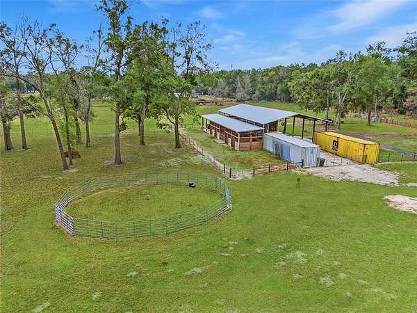 Rare opportunity to own 10 beautiful acres in Fort White, comprised of two connected, buildable 5-acre parcels--offering flexibility, privacy, and endless possibilities. The property provides the best of both worlds: one parcel fronts Freedom Court and is heavily wooded, creating a natural buffer and secluded homesite, while the second parcel fronts Cowpoke Court and is mostly cleared with scattered mature trees--ideal for a homesite, pasture, or additional improvements. Equestrian-ready, the cleared property is fully fenced and cross-fenced, making it perfect for horses or livestock. A spacious 84' x 40' pole barn with an additional 14' x 84' side features four horse stalls and a concreted wash rack. One side of the pole barn was started as a barndominium and includes a bathroom, offering potential to be finished out as living quarters, guest space, or a private office. Infrastructure is already in place, including a 3-bedroom house-sized septic system and a 4" well drilled to 100 feet. Shipping containers on the property will convey, providing ample additional storage. (RV and round pen do not stay.) Ideally located in North Florida's springs region, this property offers quick access to the Santa Fe and Ichetucknee Rivers, making it perfect for kayaking, tubing, and outdoor recreation. You're just a short drive to Gainesville for shopping, dining, medical facilities, and the University of Florida, while Lake City is also conveniently nearby for additional amenities. Whether you're looking to build your dream home, create a working farm, or enjoy a peaceful rural retreat, this versatile 10-acre property is ready for your vision.