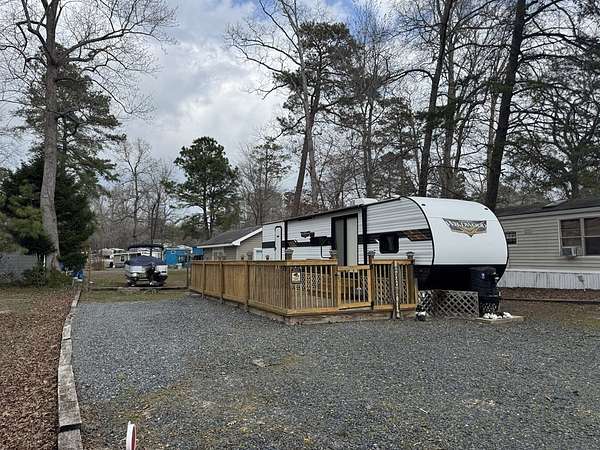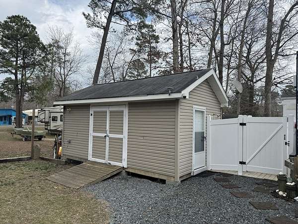 Est $627/mo2020 Two bedroom camper . Everything in good working order. Large deck. Large outbuilding that can be used for store golf cart or as a bunk room. Outbuilding has its own AC unit and hot water heater. Upgraded toilet and hot water heater in camper. Mostly stoned lot. Extra refrigerator in shed. Private outdoor shower helps get the beach sand off. Includes access to pool, dock, fishing pier, crabbing pier, marina, clubhouse, boat ramp, boat slips, pavilion, playground, and more. This property is subject to the community residency changes effective July 1, 2019.