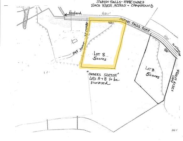 Lot B- Only 1.5 miles from Fryeburg village center, this 5-acre lot has 400' of level road frontage on Swans Falls Rd, a public paved road with easily accessible building sites. Plenty of space for one larger building site or to create two building lots. Ideal land for a primary residence, a vacation get-a-way, or builder to spec homes for resale. The building site(s) are on level, high ground, which slopes gently down to wooded land that acts as natural protection from future development. The land abuts and overlooks approximately 20 acres of unbuildable land with the Saco River just beyond, providing additional privacy. There is nice privacy from the other existing 4 homes located beyond this Lot at road's end, which share in the abundance of nature that surrounds this protected property. State land for easy canoe access to the Saco River is located across the street along with adjacent open lands owned by the Fryeburg Fair. Downtown Fryeburg: with its popular Academy, restaurants and other conveniences, is at the intersection of Routes 5 and 302. Also home to the White Mountain Regional Airport, Fryeburg is halfway between Bridgton Maine and North Conway in Mt. Washington Valley, NH, making this location the sweet spot for year-round and vacation activities. Within A 1/2 hour from multiple ski areas, and only an hour + away from the city of Portland with its seacoast and jetport, you have found a wonderful place to build and enjoy the town and surrounds. Contact Bernadette Donohue for questions 207-542-9967