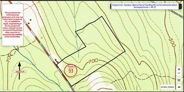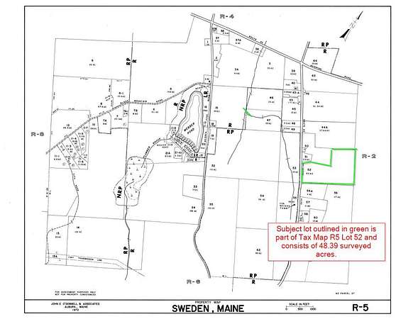 Welcome to Sweden, Maine! This attractive ±48 acre gentle sloping, open building lot offers distant views and excellent access, making it an ideal setting for a year-round home or recreational get-away. With 808 feet of paved public road frontage and power at the road, you'll have flexibility in choosing a driveway and house location. The Residential Zone allows (in part) single-family homes or single manufactured homes, along with private garages and other accessory structures. Certain additional uses may be permitted with approval, and buyers should confirm details with the Sweden Code Enforcement Officer.