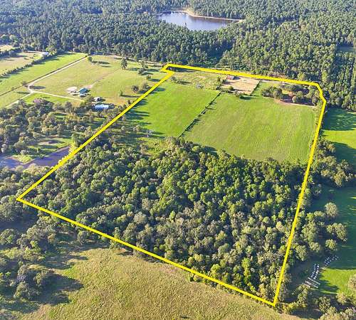 Discover this peaceful country estate with a home and barn on 41+ unrestricted acres. Just minutes from I-45, yet still on a low-traffic, county-maintained road. It is ideal for horse lovers, a family homestead, hobby ranch, or recreational retreat--with fiber optic internet available. The property features mature oak and pine trees, perfect for outdoor activities and hunting.This home includes 3 bedrooms, 2 bathrooms, updated double-pane windows, granite countertops, a commercial Viking range, and a large storage room. The third bedroom could double as an office/study, and the master bath offers double sinks and a jetted tub/shower combo. Additionally, there is an oversized aerobic system, water well, 500-gallon propane tank, and space for a second home.
