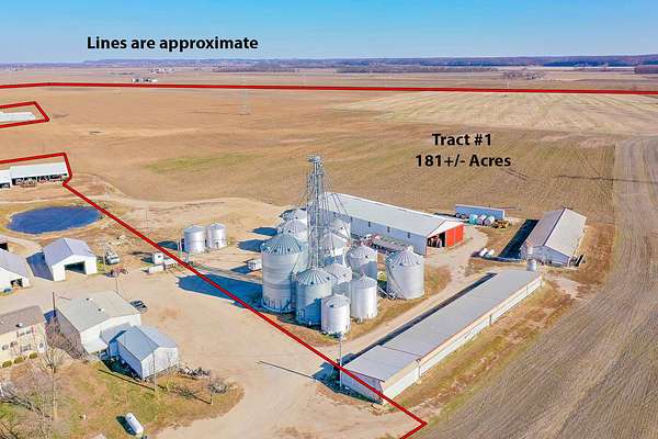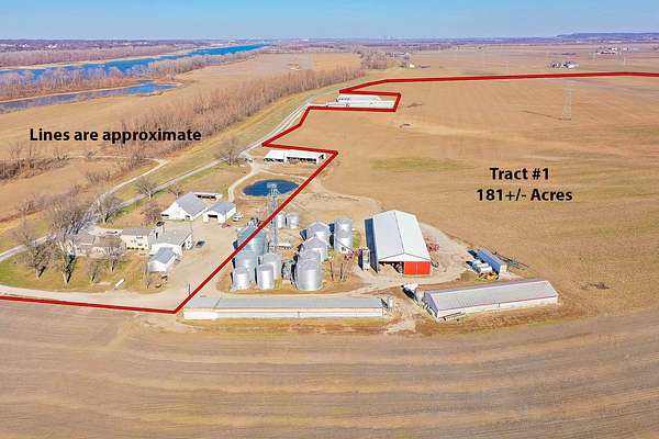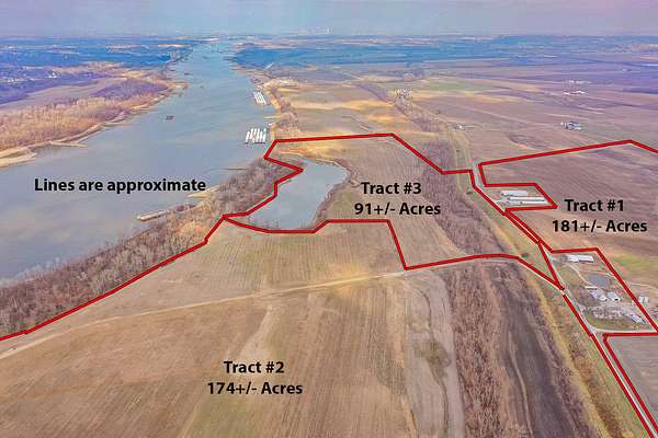 Land - Bins - Building Auction 450 +/- acres Live and Online Auction Auction to be held at Tuner Hall - 211 E Cherry Street | Columbia, IL 62236 Property Location: Columbia, IL (9442 Taake Road) Auction: February 4 @ 6:30 PM OPEN HOUSE - January 17, 10:00 AM - 12:00 PM Tract 1 - consist of 181 +/- acres of farmland with the improvements of 120,000 +/- bushels of grain storage, grain leg, and super B grin dryer. There is also a modern pole barn 60'x160' with 16' clearance (2) 30' doors (1) 36' door, mostly tillable farmland. What a great opportunity to expand/start your farm operations for future generations. Tract 2 - Approximately 174 +/- acres With approximately 150 acres being tillable, there is an inner levee of approximately 32' on the river side. An irrigation set-up with pivot that serves approximately 140 acres. Soils have proven to be very conducive to producing excellent yields. Tract 3 - Approximately 91 +/- acres Approximately 40 acres of tillable ground and has a inner levee of approximately 32' on the rive side. Note - there will be a survey completed by closing to determine final acres. We will offer the land at Auction with a per acre price which will include the improvements on each tract. Terms- $25,000 down per tract upon signing contract, balance in approximate 30 days upon closing. Buyer to pay a 3% buyer premium. Owner has right to reject any or all bids. This listing is an auction, The price listed is the starting bid of tract 3.