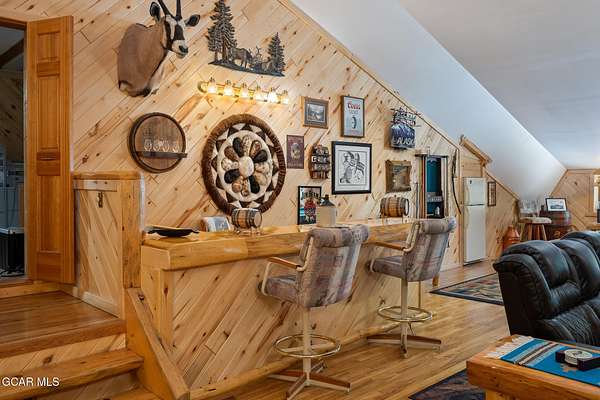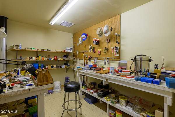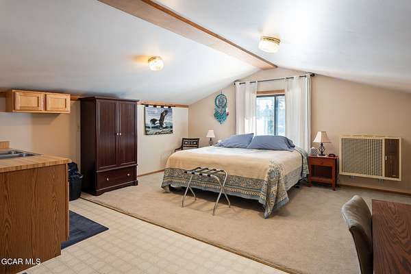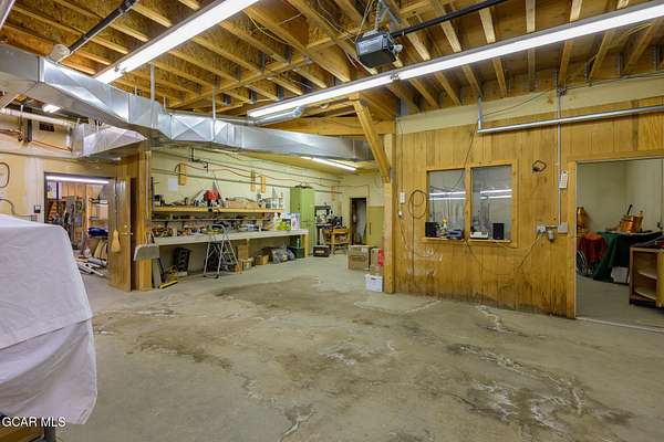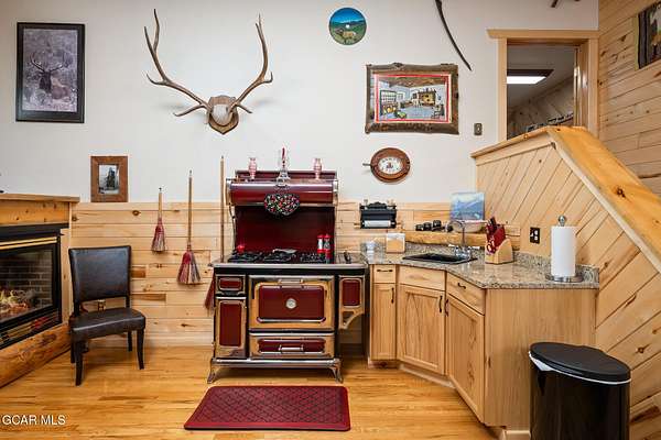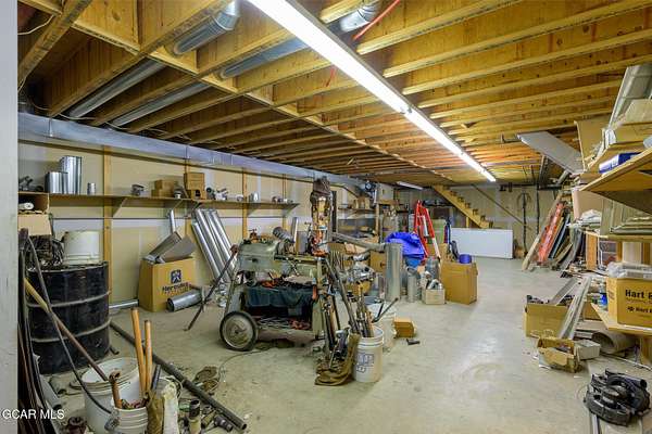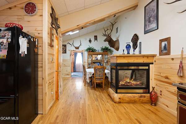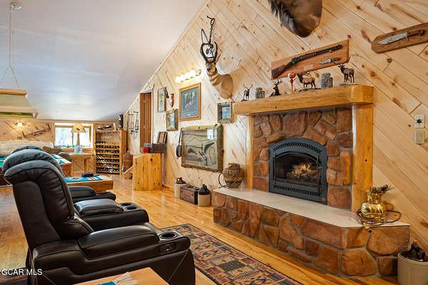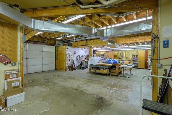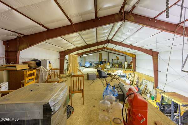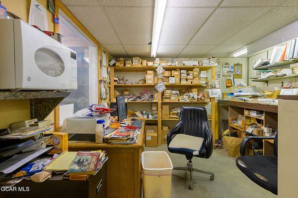 An exceptionally rare live-in commercial property, this versatile two-acre estate is perfect for business owners needing workspace, storage, and high-quality living accommodations. With 5,000 square feet of finished living space and over 9,200 square feet of shop/garage space, this property is ideal for those managing a business from home or requiring ample room for tools, trucks, trailers, and outdoor equipment. Owner financing is available The main building spans 100' x 60', featuring 6,000 square feet of shop/garage space on the main level. It includes two finished office spaces, two bathrooms, a walk-in cooler, a 10' x 12' fireproof gun safe, and a wood stove with forced air heating for efficient temperature control. Two oversized... garage doors (12' x 14' front, 12' x 8' back) provide easy access for large equipment. Above the shop, the expansive 5,000-square-foot residence showcases aspen tongue-and-groove finishes, a chef's kitchen with two gas stoves, an indoor BBQ grill, and a commercial exhaust fan, and a dining area with a gas fireplace and wet bar. The master suite includes an ensuite bath, walk-in closet, and gas fireplace, while the large guest room offers access to two hot tub-ready decks. Additional features include a third bedroom, a home office, five bathrooms, and a spacious game room with a pool table, wet bar, and fireplace. A second 80' x 40' shop/garage (3,200 square feet) includes a partially finished bathroom and a second-level storage area, which could be converted into an additional apartment. This space is heated with a wood stove and features a reinforced five-inch concrete floor. Outside, the property also includes a fuel shed with diesel and gasoline tanks and a dedicated smokehouse for processing game. Conveniently located just off County Road 5 near Highway 40, this property provides a prime location for service providers needing a centralized base of operations. The seller, formerly in the plumbing and heating business, has additional equipment and supplies available for purchase. Don't miss this unique opportunity schedule your showing today.