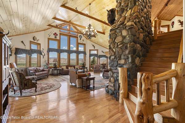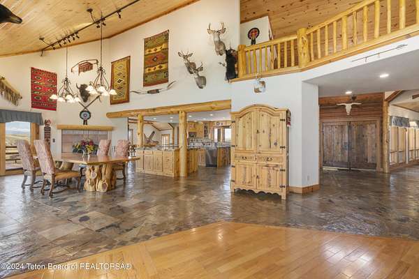 In the Valley of the Warm Winds, above the town of Dubois sits Windbreak Ranch, a well-designed equestrian facility. The main homestead, 11,500 sqft with a panoramic view of the Absaroka and Wind River mountains, sits on 72 acres. Adjacent to the main house is the 3 stall, climate controlled, finished southwest style horse barn with tack and feed rooms and attached 860 sqft guest quarters. The centerpiece of the equestrian operation is a 13,640 sqft building, with 9500 sqft, climate controlled indoor riding arena. A 3,520 sqft workshop and 2,856 sqft barn support the operations. Both the house and the horse barn feature their own Generac whole house backup generators, to provide peace of mind, in an outage. Accessed by it's own private road, the property includes 257 acres with an additional ranch house, and a spacious multilevel home with a horse barn, to make this an incredibly private, legacy compound. This property features private horse access to public lands and national forest. Whether used as a guest ranch, corporate retreat or family estate, the possibilities are numerous. This property is a full immersion in the soul of Wyoming. Available for purchase as a whole or as 4 separate properties.