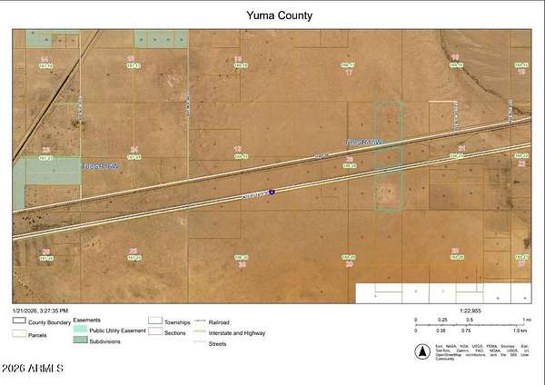 Beautiful 140 acres Homestead in Yuma, Arizona with spanning views of Tacna & Mohawk Mountains to the north. The acreage sprawls across from the north of the Old US 80 and Southern Pacific Railroad and to south of Interstate-8. There are 2 nearby landing strips and rail access. Potentially there are many uses for this land which is situated next to a large developing energy plant. Zoning allows for many development options: energy, industrial, manufacturing, distribution, agriculture, training facilities, small residential, and land banking. This property has been passed down through the family for over 125 years.