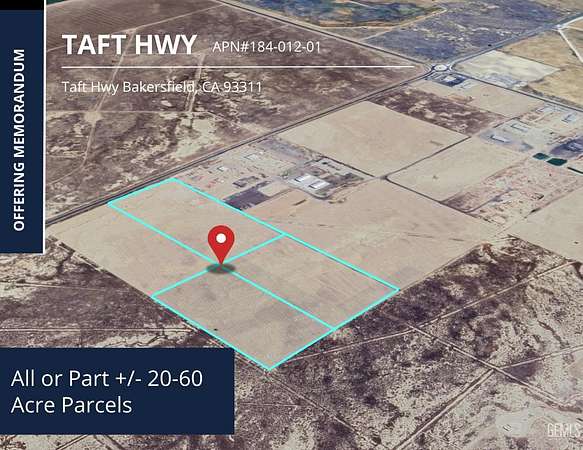 Exceptional investment and development opportunity in Bakersfield's growing industrial corridor. This offering includes three 20-acre parcels, providing a rare large-scale footprint ideal for industrial, logistics, manufacturing, or long-term investment use. The property is strategically located near Interstate 5, offering strong regional connectivity for transportation, freight, and distribution access. The area is experiencing ongoing industrial and commercial expansion, making it highly desirable for future growth. A zoning change application has been submitted and paid and is currently pending approval to rezone from Agricultural (AG) to M-2 Industrial, which will significantly enhance development potential and align with surrounding uses. Documentation is available upon request. The existing APN is planned to be subdivided into four parcels, allowing flexibility for phased development, multiple users, or resale strategies. Various purchase options are available.