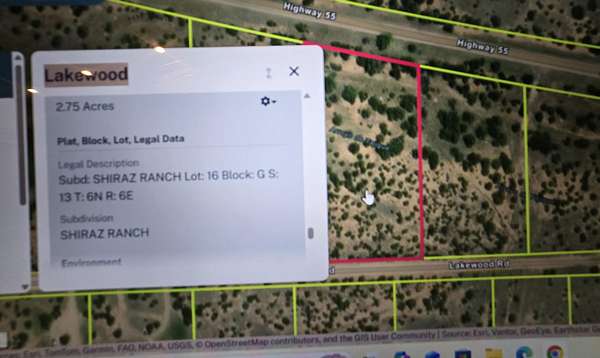 South on 337 past Chilili.. at the T go west (right) on 55. Left on Sherwood aka Rosewood. Lakewood is first cross street on left. Drive Lakewood almost to the turnaround. Lot 16 is on north side.