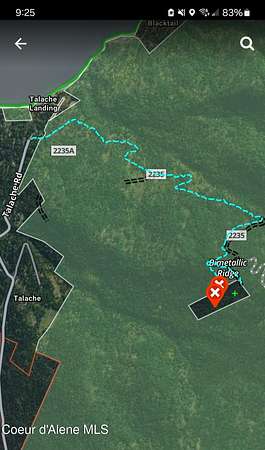 US 95 to Sagle Rd, Right on Talache rd to Pearl Cr and follow OnX Track from agent