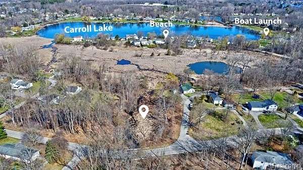 Just in time for summer, enjoy deeded day-use access to all-sports Carroll Lake and connecting Clark Lake! Convenient off-site parking is available near the beach, boat launch, and Wise Woods trailheads just a short walk down the street. This sale includes four parcels (each 0.06 acres) totaling 0.24 acres. The lots can be officially combined through a simple township application and fee, offering flexibility for future use. A scenic creek runs through the parcels, adding to the peaceful, natural setting-perfect for relaxing and enjoying the tranquility of the outdoors. Don't miss this opportunity to own a slice of land with access to the fantastic amenities of the Carroll Lake Heights community! Property is subject to an existing Wetland Management Plan. Buyer to verify all buildability and environmental use restrictions.