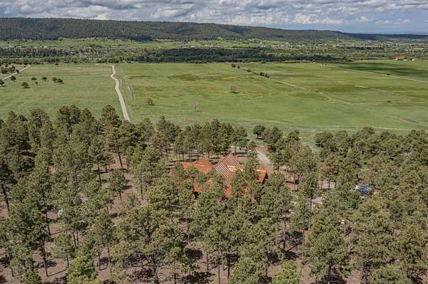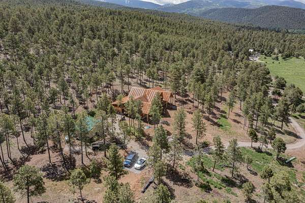 Nestled in a grove of ponderosa pine and embraced by the fresh mountain air of the Sangre de Cristo Mountain range, this property offers more than a view... It offers a way of life. Following the natural movement of the hillsides, the private road leads you on a welcoming path to a unique home, resting perfectly in-tune with its environment.Unbothered by population density, this home is located on the southern end of the Rocky Mountains, just 30 miles south of historic Taos, New Mexico. At 8,500 ft, this 285+- acre landscape lends airspace to a stunning view of the 13,000 feet Jicarita Peak (a mountain held sacred by the local Picuris Pueblo people) and neighbors the Carson National Forest and Pecos Wilderness. It stands ideally situated amongst a bountiful, restored ponderosa