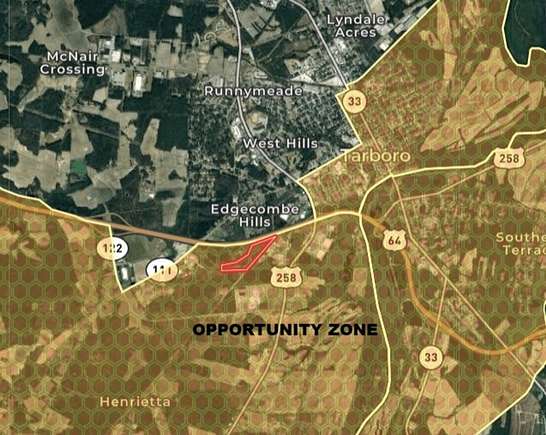 45 Acres of Affordable Recreational & Hunting Land For Sale in Edgecombe County NC! The access path runs under Hwy 264 and alongside the railroad tracks with the entry point located off W. St. James St and SR 1294 next to the railroad tracks. This property has well over 1 mile of ATV / side by side trails. The terrain is rolling with sandy bottom trails and when it rains you can have some fun in the mud alongside the creek trail. There is a creek bordering some of the property line and 1 small pond and also a swamp area that has a hard bottom and clear water. These two water features combined cover approximately 1.5 -2 acres. Scattered natural lob lolly pines cover much of the property with various hardwoods mostly along the creek. The predominant soil type covering about half of the tract is Autryville Loamy Sand with Pactolus, Bibb and Goldsboro sandy soils coving the other half. The property is mostly well drained and dry on high ground with creek and shallow swamp environments making great habitat for waterfowl during the wet winter months. The property does have buried utility easements that are cleared and represent some of the trail system. Deer and turkeys are the predominant wildlife on this tract with coyotes and bobcats passing through. This property is made of of two combined tracts with one tract being in the Tarboro city limits and one tract outside the city limits. Edgecombe County does show this property within a government "Opportunity Zone". This property is minutes from downtown Tarboro with Rocky Mount 17 minutes away and Greenville 35 minutes away. Hwy 264 is just minutes from the access path. This affordable recreational and hunting property will not last long.