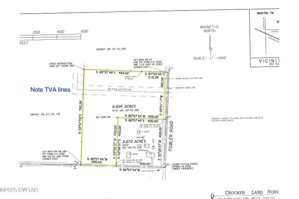 Est $1,200/mo8.894 acres of level residential land in the Martin, Tennessee, city limits with city utilities available at the road. There is a small pond on the property and fencing around the perimeter. Seize this opportunity to own potentially developable property close to the University of Tennessee at Martin or a large lot for your future homestead. Call for more information! Can be sold with MLS #2504536 at a total asking price of $349,900. Tax amount shown is based on the 12+ acres. There is a TVA right of way at the back of the property.