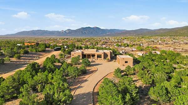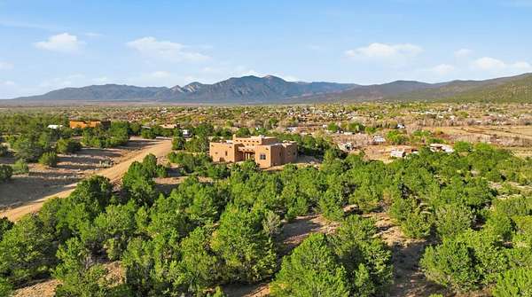 The Last Horizon on Tatanka Trail with Multiple Build Sites ~ Welcome to the absolute end of the line in the sought-after Tatanka Trail neighborhood on the South end of town. A low-maintenance, four-acre parcel sprawling with lush pinon and juniper trees anchored directly to the mystical Talpa Valley. This isn't your ordinary parcel in the region; it's a strategic high-desert vantage point with multiple flat build sites, unobstructed elevated views of the Sangre de Cristo Mountains, and some of the best sunrises in New Mexico. Imagine stepping out of your dream home onto your future porch overlooking the Taos Valley and majestic mountains in the near distance with your own mini-forest. Not to mention the Carson National Forest down the road, which offers endless mountain biking and hiking trails, along with all the other outdoor activities. Electricity is available at the lot, and fast fiber-optic internet is ready to connect. Situated south of town in a thoughtfully emerging enclave protected by sensible covenants, this exceptionally versatile acreage offers uncommon flexibility and the rare opportunity to split the lot to build multiple residences, or keep it all as one. Regardless, this Tatanka Trail parcel is one you don't want to let go...