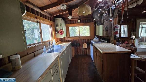 If you are seeking privacy, this unique opportunity is for you. Own your very own 33-acre boat-access peninsula on Pelican Lake. This exceptional property includes two log cabins, storage cabin(s), a lake water system, and a septic system (to be inspected). The entire property is powered by a generator, and there is a lakeside sauna conveniently located near the dock. Cabin 1 is a beautiful, seasonal, two-bedroom plus loft, one-bath cabin with a living room, built by Voyageur Log Homes. Cabin 2 is the original, historic vertical log (stockade log) cabin, constructed in 1929. This cabin features a kitchen, a spacious living room, two bedrooms, a bathroom, and a screened-in porch with a wraparound deck. While this cabin is functional, it could benefit from some TLC. The dock provides ample space to accommodate all your friends and family. The property also features an ATV and walking trail system throughout. There is potential to subdivide the land for additional lots. Comes furnished.