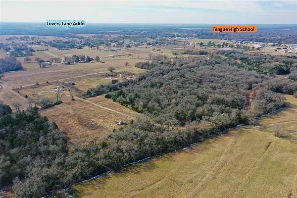 This 72.28-acre tract in Teague, TX is a versatile property positioned for both recreational use and potential residential development. Located partially within the city limits, it offers a rare combination of large-acreage privacy and town amenities. The terrain is mostly wooded with several ponds, providing natural seclusion and a haven for local wildlife. Low taxes with the wildlife exemption in place. Gas company roads provide a convenient way to traverse the majority of the acreage with ease. Near the Lovers Lane Addition, a key indicator of its residential development potential. City water line runs along FM 553 on same side of the road as the property. For price & installation details, please contact the water dept. Since there are NO Deed Restrictions you have the freedom to use it as a private recreational retreat, develop it or build a new home! Approximately 90 miles south of Dallas and just 10 minutes from Interstate 45, it's an easy to commute to major cities.