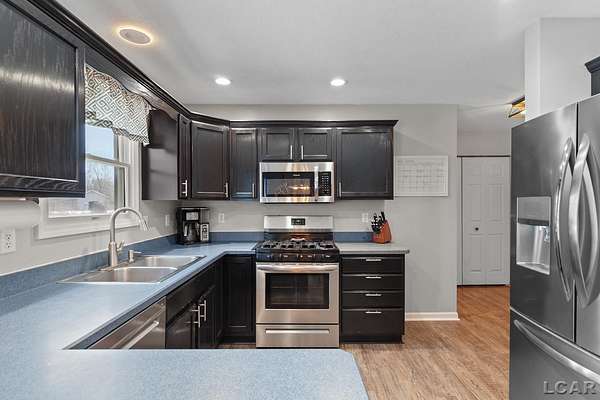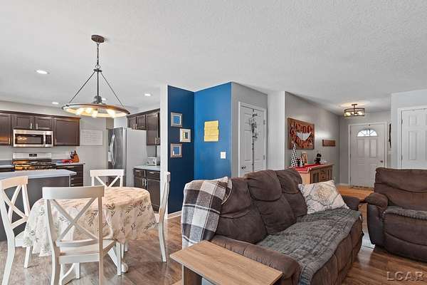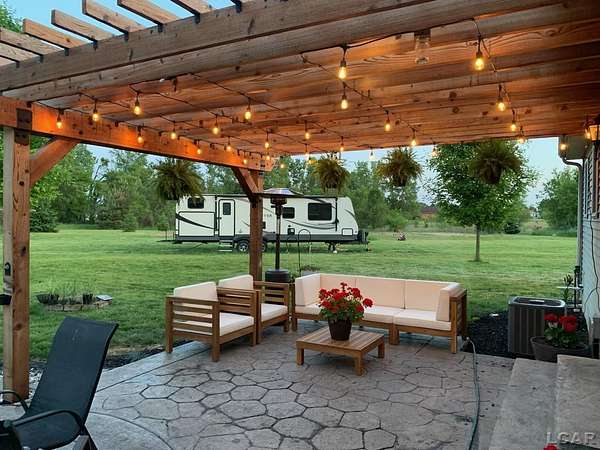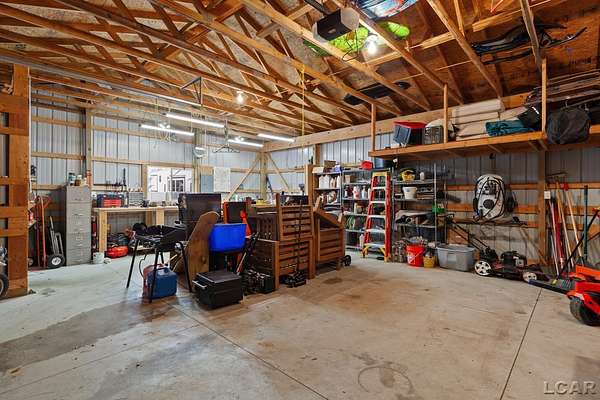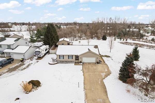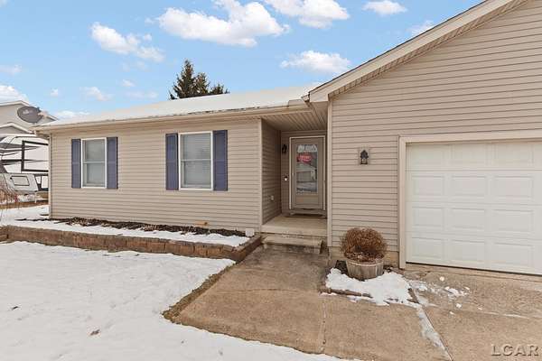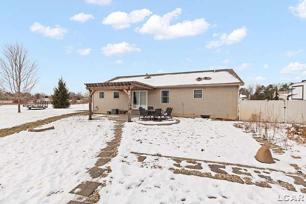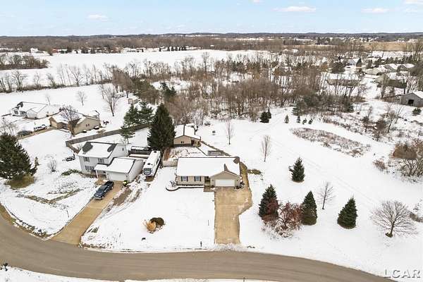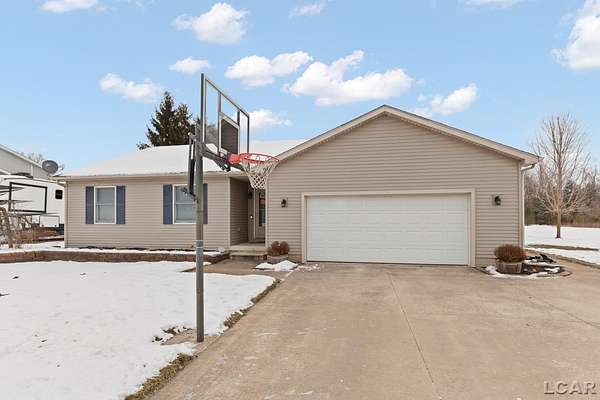 Welcome to this inviting home located just outside of Tecumseh in highly desirable Raisin Township, where the convenience of subdivision living meets the peace and privacy of a serene country setting. This well-maintained home offers three comfortable bedrooms, including a spacious primary suite featuring a walk-in closet and private full bathroom, along with a second full bath for family or guests. The bright living room flows seamlessly into the dining area and a large kitchen with ample cabinetry, generous counter space, and a pantry--perfect for everyday living and entertaining. A first-floor laundry room adds to the home's practical and functional layout. The full, partially finished basement provides additional living space, storage, or future possibilities. Step outside and enjoy the beautiful outdoor setting on 2.34 acres, complete with a stamped concrete patio and pergola, an ideal spot for relaxing or hosting gatherings. The impressive 24x32 pole barn with electricity, workshop area, and large garage door offers excellent space for hobbies, equipment, or extra storage. Surrounded by wildlife and natural beauty, this property offers privacy, room to explore, and a tranquil atmosphere, all while being just minutes from Tecumseh's shops, dining, and amenities.