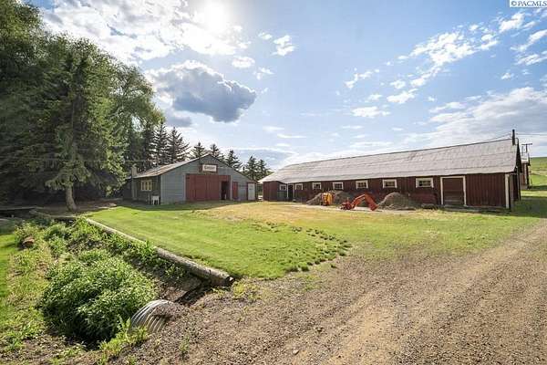 Experience the quaint country lifestyle on seven rolling acres of the Palouse. Located just one mile from nostalgic town of Tekoa, Washington, this beautifully updated four bedroom farmhouse seamlessly blends timeless character with modern efficiency. Inside, you will find a home designed for year-round comfort featuring a cozy gas fireplace and a kitchen equipped with a gas range. Significant infrastructure upgrades offer total peace of mind, including a 50-year roof, updated forced air with central air conditioning, and a partially paved driveway leading to a two-car garage. You can relax on the covered front porch to soak in stunning mountain views or unwind in the hot tub after a long day. This property is a dream for hobbyists, mechanics, or those seeking a homestead with extensive outbuildings. The massive 30x50 pole building features a 13-foot door perfect for RV storage, heavy equipment, or finish out the interior for an ample large-scale workshop! There is also a classic wood shop space heated by a wood stove for year-round projects. The property sports not one, but TWO retired barns, with concrete floors ready for livestock, storage, or your creative vision- Multiple additional outbuildings provide ample room for all your tools and equipment. The manicured yard is truly a standout! Whether you are practicing your drive, hosting friends in the dedicated outdoor grilling area, or enjoying the teeter-totter, the outdoor space is an entertainer’s dream. From the rolling hills to the functional shop space, this property exudes a charm that simply must be appreciated in person. This is more than just a home—it is a legacy property with room to roam. Schedule your showing today to experience the beauty of country living!