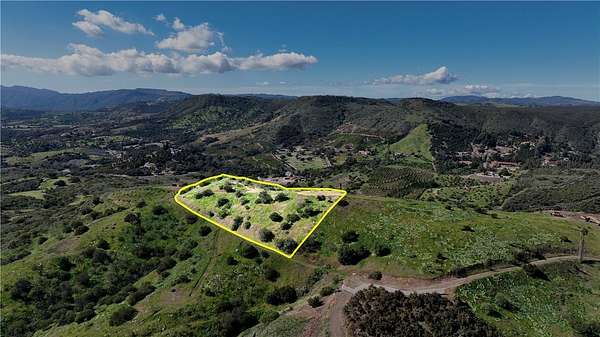 Enjoy panoramic 360 degree views from this 5-acre parcel! Nestled in the hills of De Luz near Cross Creek Golf Club, you will have 360 degree views overlooking neighboring estates, golf course, hills, mountains, and on clear day, the ocean! Previous owner had prepared typographic maps, renderings and grading plans. Once a thriving grove with a 1.5" water meter. Power at roadside. Build your custom estate on this hill-top gem: Located only 12 min from the 15 fwy and Old Town Temecula, this location offers both seclusion and convenience. Great potential for developer with surrounding parcels. Please refer to the city of Temecula for usage approval or restrictions.