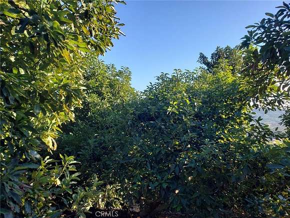 Excellent avocado grove with 4000+- 20 year old trees with additional 400 trees that were added in 2021 with potential for excellent income and cash flow; there is also more space available for additional planting. Irrigation is supplied by a 3" water meter & 2 wells with five 5,000 gallon tanks. One additional well also on the property currently not in use. Property also has electricity already on the property. Fenced and gated access, grove roads in very good condition & the property has a gentle slope that increases to allow for good drainage. Located at the end of a Cul-De-Sac with incredible views of the surrounding countryside that seller says includes a view of the ocean on a clear day; this would provide the perfect location for an estate home since it already has a flat pad that seller says has been graded for building. This is one of the best agricultural investments available in the area and a definite must see. Grove records and projections are available for review to serious buyers. The seller is willing to stay on as long as needed to assist in the transition ensuring the grove continues to improve in production and profitability
