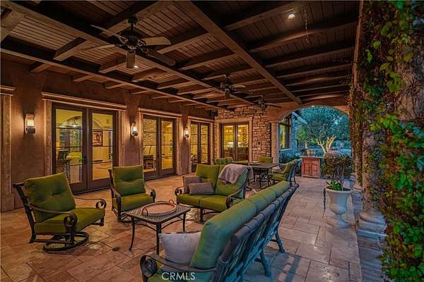 Experience refined luxury in this stunning Ponte Estates residence surrounded by Temecula’s iconic vineyards and breathtaking mountain panoramas. This exceptional 5,391 sq ft, 3-bedroom, 4-bathroom home combines timeless craftsmanship with high-end modern technology, delivering the ultimate wine-country lifestyle. Located in one of the most desirable areas of Temecula Wine Country, this home is within walking distance to three of Temecula’s most prestigious wineries—Ponte, South Coast, and Wiens. Enjoy the ease of strolling to Ponte Winery, Ponte Vineyard Inn, and the Ponte Cellar, as well as indulging in fine dining right at Ponte’s celebrated restaurant. Inside, the home features soaring vaulted, beamed ceilings, exquisite custom alderwood cabinetry throughout, and elegant travertine tile flowing through the interior spaces and outdoor patios. Pocket doors allow you to separate living areas gracefully, while plantation shutters inside and storm shutters outside provide comfort, beauty, and added protection. A complete water filtration system, copper rain gutters, whole-house intercom system, and meticulous details throughout showcase quality at every turn. Energy efficiency and reliability are enhanced by a paid 30 panel solar system with battery backup. This true smart estate is equipped with an advanced Control4 system, allowing seamless control of every light in the home, the gated entry, and the entire security system. Outdoor living is unmatched, with expansive patios offering 360-degree views of vineyards, rolling hills, and the surrounding mountains—the perfect backdrop for serene mornings, unforgettable sunsets, and wine-country entertaining. A rare opportunity to own a meticulously crafted estate in the heart of Temecula Wine Country, surrounded by luxury, convenience, and world-class experiences just steps from your door.
