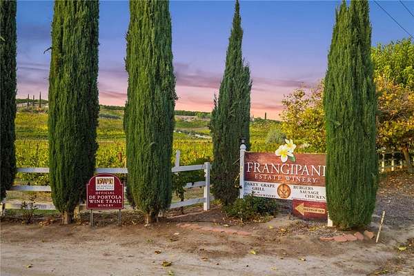 Frangipani Estate Winery is a rare offering along the renowned De Portola Wine Trail, set in the heart of Temecula Valley's thriving wine country. This long-established family winery presents an opportunity to take stewardship of a fully operational estate known for its warm atmosphere, handcrafted wines, and deep roots in the community.