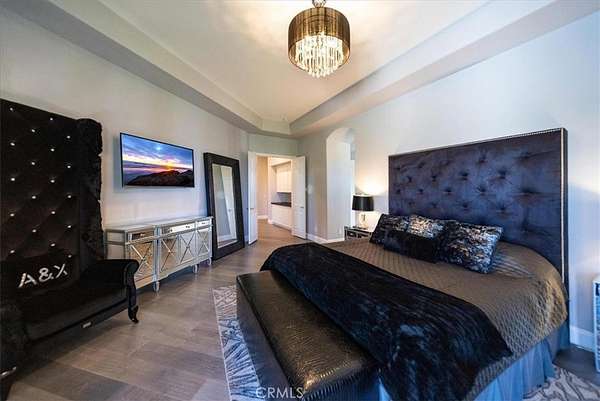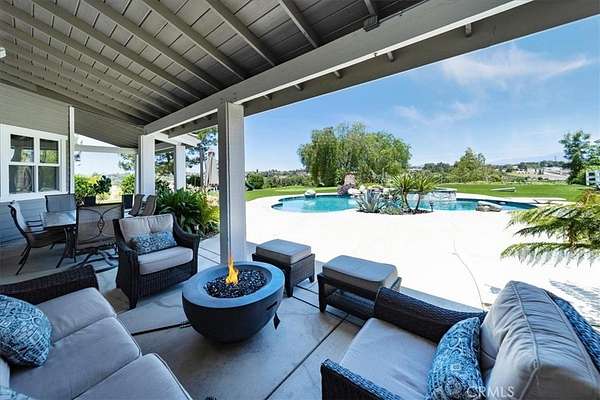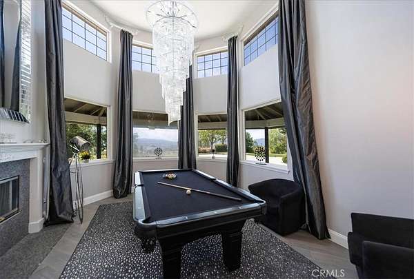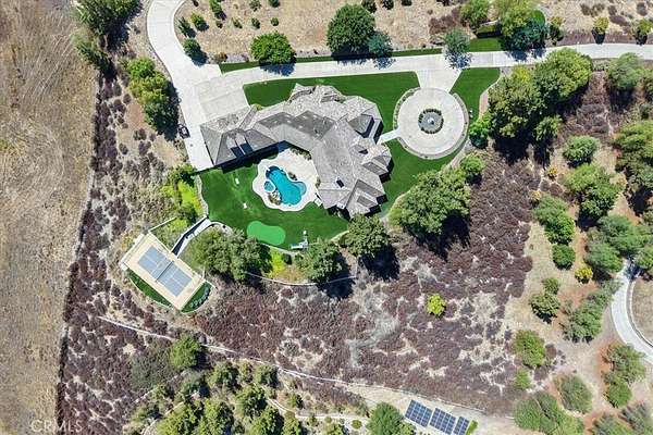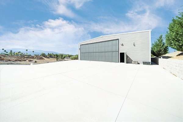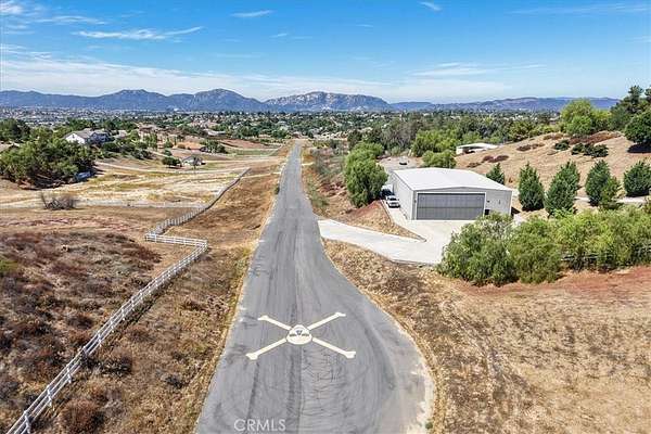 Fly-in convenience meets wine-country luxury with private airstrip* access and a 4,800 sq ft hangar. Perched on 7.36 acres of Temecula wine country, this single-story home offers convenience alongside luxurious living. Step inside through a gated entry to a grand foyer with soaring ceilings that opens to a great room featuring a floor-to-ceiling stone fireplace and vaulted wood-beam ceilings. The chef’s kitchen boasts granite countertops, a center island, separate breakfast bar and top-of-the-line stainless steel appliances. Panoramic orchard and mountain views frame the formal dining area. Retreat to the master suite with vaulted ceilings, a private fireplace and dual French doors leading to the landscaped backyard oasis. Enjoy a sparkling pool and spa, dual-sink vanity, jetted jacuzzi tub, large walk-in shower and his-and-hers closets. Three additional bedrooms include two en-suite baths and one versatile room currently used as a home office with its own private entrance. Beyond the home, aviation enthusiasts will love the covered storage adjacent to the hangar and the large, flat event area perfect for RVs, car shows or gatherings. A full-size lighted pickleball court and ample covered storage complete the outdoor amenities. With dramatic “360-degree” views, privacy and unparalleled access to a private runway, this rare Temecula property may never be matched. Schedule your private showing today and experience a lifestyle that combines luxury, recreation and aviation. You will NOT see a listing like this again… *Airstrip/Runway is private to the Homeowner's Association.