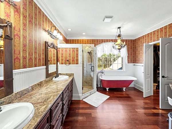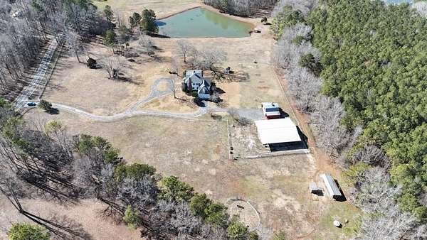 A Josiah Smith-Inspired Estate - 17.43 Acres Exceptional 17.43-acre Gentleman's Farm featuring a stately colonial residence designed by William E. Poole, inspired by the historic Josiah Smith House. Private setting with winding drive, white fenced pastures, mature hardwoods, and scenic pond views. Residence: Spacious 4 bedrooms, 3.5 baths with a large loft. Solid hardwood and stone flooring throughout. Chef's kitchen with expansive windows and breakfast area overlooking pastures and pond. Formal dining room with propane log fireplace. Family room with second fireplace and panoramic views. Upper and lower covered side porches provide shaded outdoor living. Oversized garage with private gym/office suite above. Finished basement with regulation billiards area and refreshment center. Dedicated hobby space. Equestrian & Land Features: Over 17 fully fenced acres, mostly cleared with hardwood groves ideal for horses, livestock, or future arena installation. 3-stall open-front horse barn with tack room Professional metal round pen Private pond with dock and gazebo Improved garden soil and maturing orchard Outbuildings & Utility: 60x40 pole barn with 30-amp RV hookups 30x40 two-story insulated workshop with dedicated power and water Additional utility infrastructure supporting agricultural or recreational use Systems & Infrastructure: 24kW Generac automatic whole-house generator with 300-gallon underground propane tank High-capacity well with water softener and filtration system Dual 4-ton high-efficiency Trane heat pumps A rare combination of architectural heritage, equestrian readiness, and modern mechanical reliability. Functional for farm use, recreational living, or multi-purpose estate enjoyment.