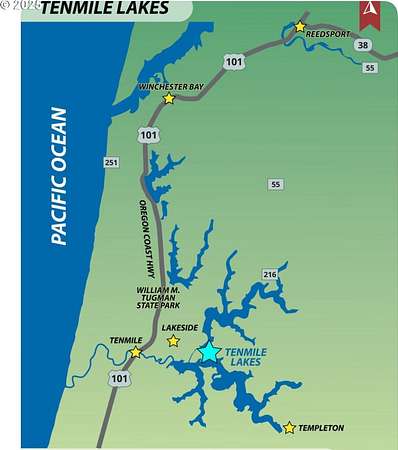 OWN YOUR PRIVATE SLICE OF TENMILE LAKE---Escape to the serene beauty of Tenmile Lake in Lakeside, Oregon, where an extraordinary opportunity awaits on seven secluded, boat-accessible lots nestled among towering evergreens and mirrored waters. This private haven offers unmatched peace and tranquility, making it the perfect canvas for your Northwest dream Lakehouse. Imagine family and friends each securing a lot to build a retreat of their own, creating a cluster of homes where memories are shared across shimmering waters and star-filled skies. Tenmile Lake is celebrated as one of Oregon's premier fisheries, abundant with largemouth bass, trout, and panfish, while boating, waterskiing, and paddleboarding make every summer day unforgettable. From your lakeside sanctuary, a short trip carries you to the Oregon Dunes National Recreation Area, where sand dunes meet the Pacific, or to the charming town of Lakeside with its local shops, parks, and community events. Just north lies Winchester Bay with its fishing village charm, and to the south, Coos Bay and North Bend provide full amenities, dining, and entertainment. Whether casting a line, exploring forested trails, riding ATVs on the dunes, or simply savoring the stillness of the lake, this rare offering promises a life of both adventure and escape. Seize the chance to own an untouched slice of Oregon's coast and create your legacy at Tenmile Lake, where nature's beauty and timeless memories are waiting to be built. For the golf enthusiast, Bandon Dunes Golf Resort (only 40 miles south by road) needs no introduction-this iconic links-style destination, carved from windswept sand dunes above the Pacific, is revered as a cross between Pebble Beach and Carnoustie-with a pinch of Pine Valley for good measure. Since opening in 1999, it has become legendary among purists, celebrated as the truest expression of golf --as it was meant to be! ALL SEVEN LOTS ARE BOAT ACCESS ONLY.