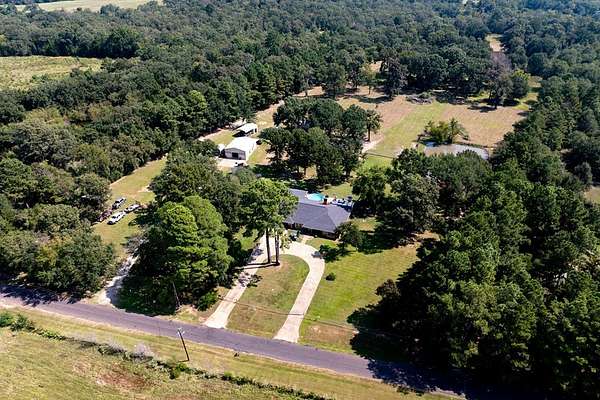 Beautiful 4 bedroom 3 bath on 15 acres with 30X40 shop, barn, 3 storage buildings & Amish greenhouse. Enjoy a beverage in the Tiki hut overlooking the pond. Owner reports good hunting in the woods (see pics). There is also a deep well. The spacious home has a flexible floorplan for family and entertaining. Relax on the patio in the above ground pool. Or take a 4X4 on the trails in the woods. This property has it all and more. Located a few miles from Trinity Valley Community College and convenie