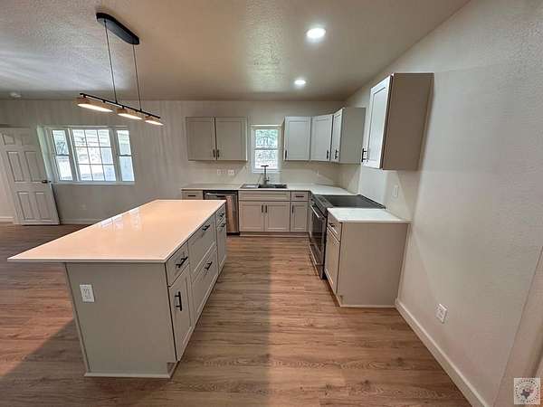 Completely remodeled 4-bedroom, 2-bath home located just outside the city limits on 1.65 acres. This split-bedroom floor plan offers privacy with three bedrooms and a full bath on one side, while the spacious primary suite sits on the opposite end featuring a full ensuite bath and a large walk-in closet. The open-concept layout highlights generous room sizes and ample closet space throughout. The kitchen boasts soft-close cabinetry paired with elegant quartz stone countertops, and high-quality luxury vinyl plank flooring flows seamlessly through the entire home. Additional features include a 10x20 shop, a large carport storage closet, and a three-car carport, providing plenty of space for vehicles, storage, and hobbies. A perfect blend of modern updates and peaceful country living.