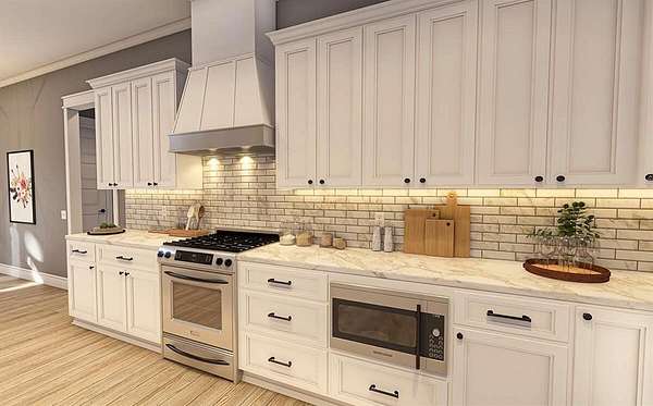 This beautifully crafted proposed Thatcher plan showcases a spacious, open-concept design, this stunning residence features 3 beds & 2 baths & a 2-car garage. Take advantage of NO PAYMENTS while you build with Zeal Home Builders! This plan is fully equipped with all the features one would expect from a custom home, including split bedrooms, spacious porches, custom cabinetry & closets, Delta faucets, a concrete driveway, decorative mirrors, wall-mounted TV outlets, & hardline Ethernet ports. The builder has invested in high-quality details such as spray foam insulated walls & more. The two-car garage is thoughtfully designed with can lighting, a smart MyQ side-mount garage motor, & an auto-lock system for added security. Plus, you can add convenient Costco door in the pantry allows for easy unloading of groceries directly from the garage. As you enter the open concept home you have a generous living area that leads to the dining & kitchen. Luxury vinyl plank floors in the common areas with carpet in the bedrooms & accent tile in baths & laundry. The Kitchen has abundant storage, including an oversized hidden pantry, granite or quartz countertops, an eat-at-island with custom painted cabinetry, stain grade available for upgrade. The living room boasts a vaulted ceiling, while the master suite features a vaulted ceiling, stylish barn door leading to a luxurious en-suite with dual sinks, a separate shower, & a soaking tub. Enjoy the tranquility of privacy away from the city while still being conveniently close to amenities. Estimated completion 5-7 months from start to finish. With a wide range of options at your disposal, you can tailor it to suit your unique needs. Home has 3-phase inspected & a comes with 1-2-10 3rd Party Warranty for your peace of mind. Images depicting a model home. Features & finishes are subject to change. Txt keyword ZHB56 to 88000 for Feature list & more! Directions & lot map at zhb.homes