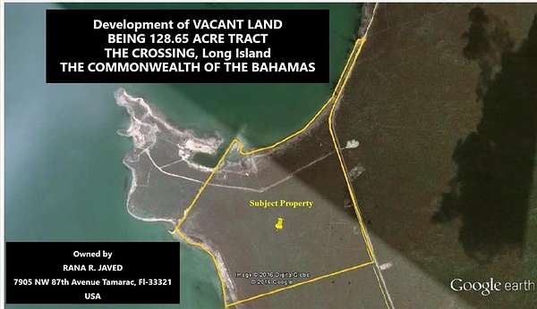Est $29,284/moTHIS VACANT PARCEL OF LAND(128.65 ACRS) IS LOCATED SOUTHWEST OF CARMICHAEL POND; AS PER INTERFACED LOCATION AND SURVEY PLANS; SITUATED APPROXIMATELY ONE AND ONE EIGHTH MILES SOUTHEAST OF SALT POND SETTLEMENT AT THE CROSSINGS ON QUEEN'S HIGHWAY OF LONG ISLAND, COMMON WEALTH OF THE BAHAMAS. READY TO BE DEVELOPED AS OCEAN FRONT COMMERCIAL OR RESIDENTIAL COMMUNITY.