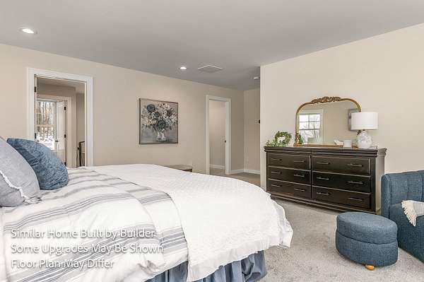 Welcome to Merry Hill, an exclusive 4-home neighborhood offering privacy, acreage, and convenience in one exceptional location. Just minutes from Swains Lake and Round Pond, enjoy year-round recreation including boating, kayaking, swimming, and hiking. With easy access to Route 4 and Route 125, this thoughtfully situated community offers a peaceful setting without sacrificing convenience. This spacious two-story home offers approximately 3,400+ sq ft of open-concept living designed for today’s lifestyle. The first floor features a bright kitchen with center island and walk-in pantry, seamlessly connected to the dining area and living room with gas fireplace. A private study provides ideal work-from-home space, while the sunroom fills the home with natural light and leads to an oversized deck overlooking the expansive homesite. Upstairs, the primary suite includes an impressively sized walk-in closet and private bath. Three additional bedrooms offer flexibility, including one with its own en suite bath and adjacent nook, creating a comfortable secondary suite ideal for guests or multi-generational living. A second-floor laundry room adds everyday convenience. The attached two-car garage offers exceptional depth for storage, recreational equipment, or workshop space. A full unfinished basement provides additional storage and future expansion potential. One home is currently pending, with three homesites still available — several offering over 4+ acres. Buyers may customize selections and finishes, and alternative floor plans are available to create a home tailored to your needs. Every home is Energy Star Certified and built by a multi-year EPA Partner of the Year award-winning builder known for quality craftsmanship and long-term value.