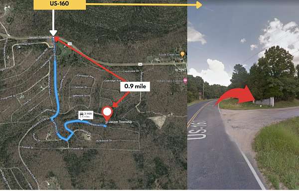 Traveling west from Gainesville on 160, head south on Country Club Drive to Fairview Cr. to Meadow Ln. Approximately 3 minutes from 160.Center GPS Coordinates: 36.570862, - 92.628772Corner GPS Coordinates: 36.571101, - 92.629003