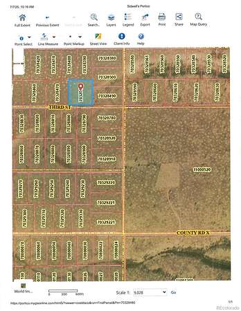From Hwy 159 turn W on Co Rd X and follow to Aztec; turn right (N) on Aztec and follow to Third St.; turn left (W) and property is the second parcel on the right.