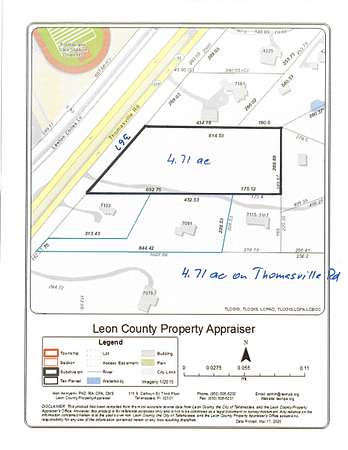 Est $5,849/moPART OF 3 PARCELS TOTALING 8.55 AC ACROSS THE STREET FROM CHILES HIGH SCHOOL. FRONTAGE ON THOMASVILLE RD IS 442 feet This listing is 4.71 ac high and dry land - currently zoned Rural. See additional acreage of 1.06 ac at 7117+7119 Thomasville Rd (MLS # 383291, Tax ID 1414206040000 - duplex) and 2.78 ac at 7091 Thomasville Rd. (MLS #383290, Tax ID 1414206010000 ) There is no road through the land.