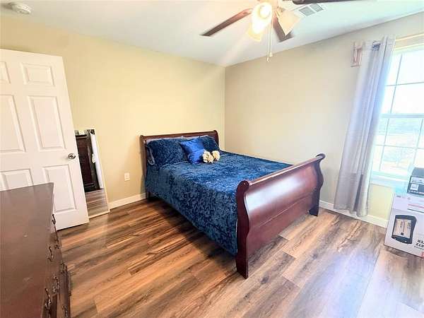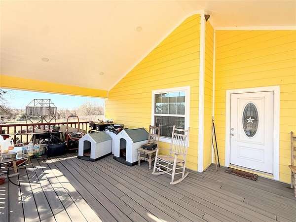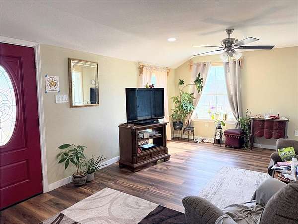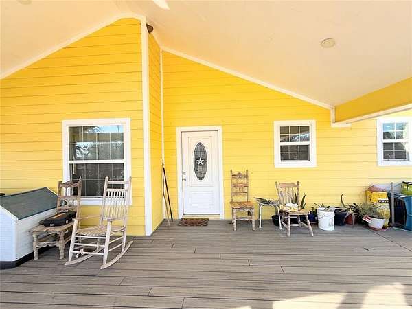 Adorable craftsman style- home on 4.36 acres, completely renovated in 2021! The 2 bedroom 3 bath home is 1,274 square feet with rich walnut vinyl plank flooring throughout the residence. The interior has been designed with arched doorways as well as recessed lighting. The open kitchen has granite countertops, stainless steel electric appliances and beautiful white cabinetry. Both bathrooms have beautiful gray tile flooring with matching showers. There is a separate storage and laundry room off of the side porch. Both large, covered porches are fully finished with recessed lighting and have natural open gables with composite decking for durability. A 30 year composite roof was installed in 2021 and home has been fully spray foam insulated. The home runs on a water well and aerobic septic tank that is only 4 years old. The sellers have installed an alkaline drinking water system. Outside, there is ample room and the property has been fenced off separately to allow for different usages. A pond also sits at the back of the 4.3 acres. Additionally there is even a storm shelter!